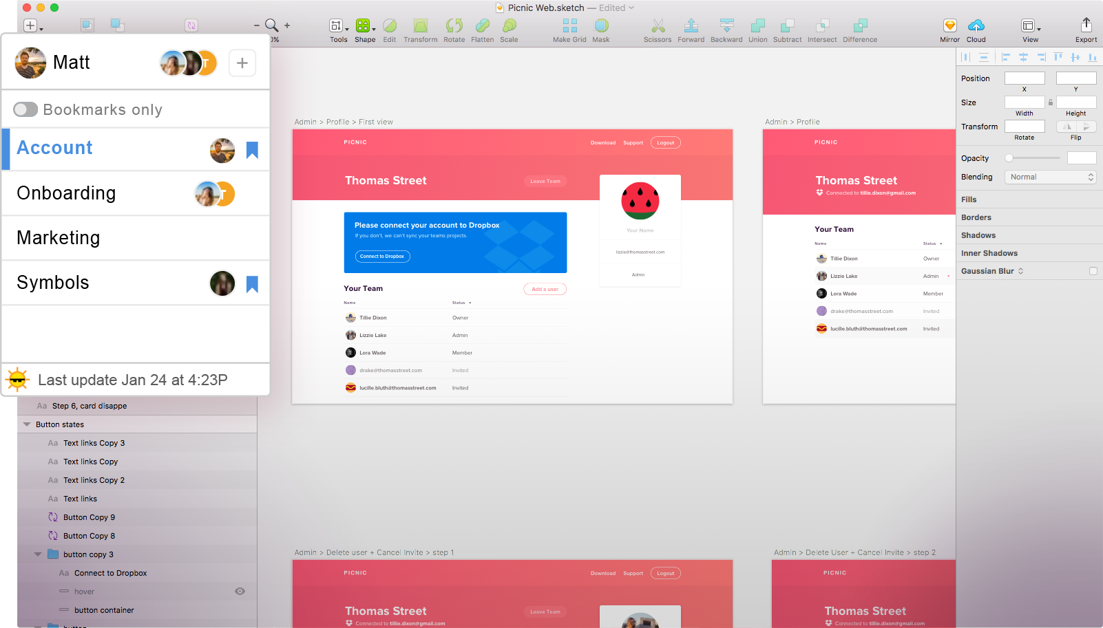 Picnic brings everyone together in a single Sketch file, making for better organization, clearer communication, and a stronger team presence.